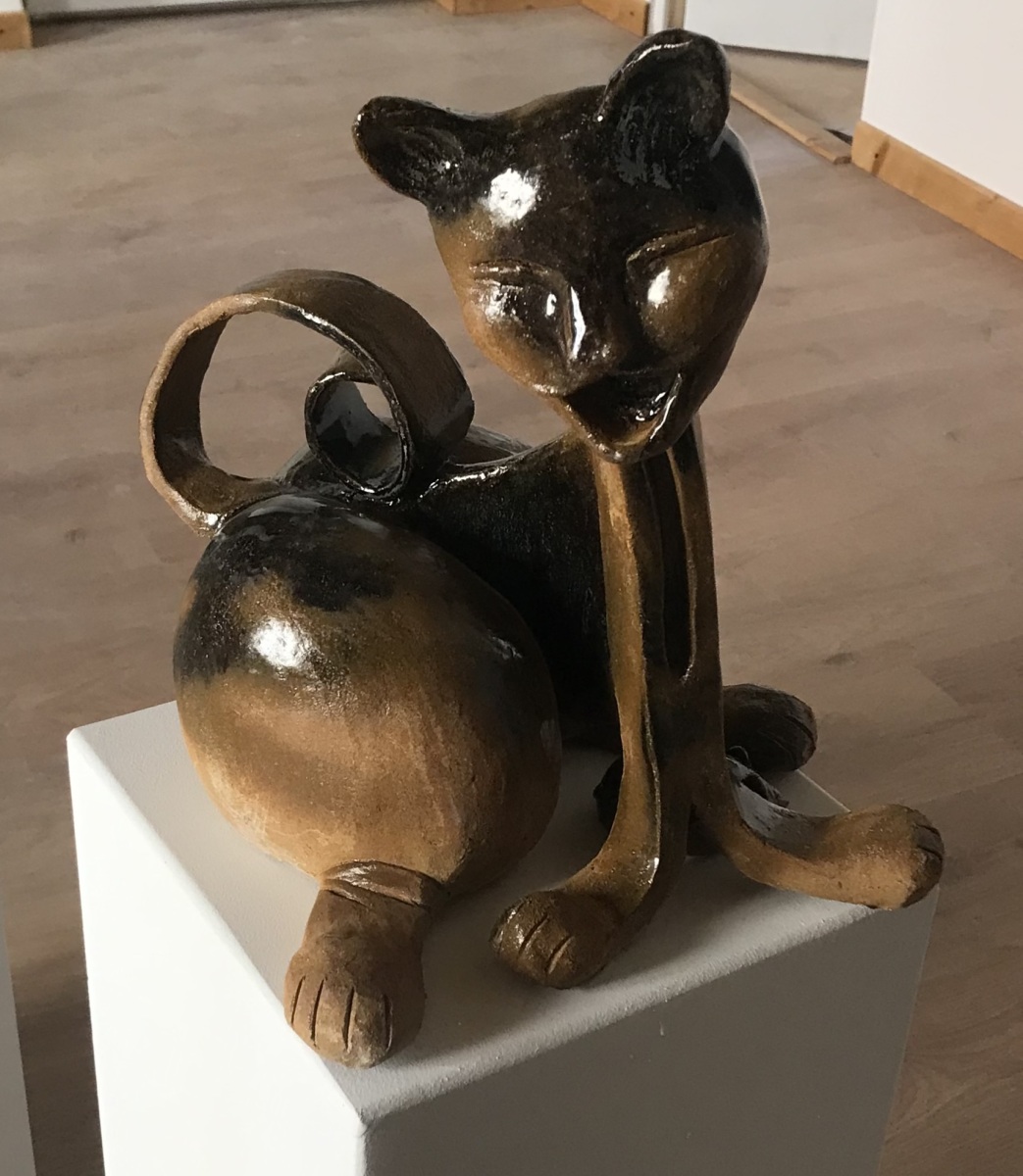 chat en céramique